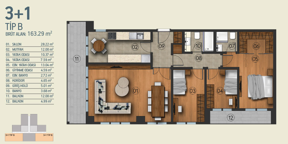 Unit Type: 2 + 1, 3 + 1, 3 + 1 duplex, 4 + 1